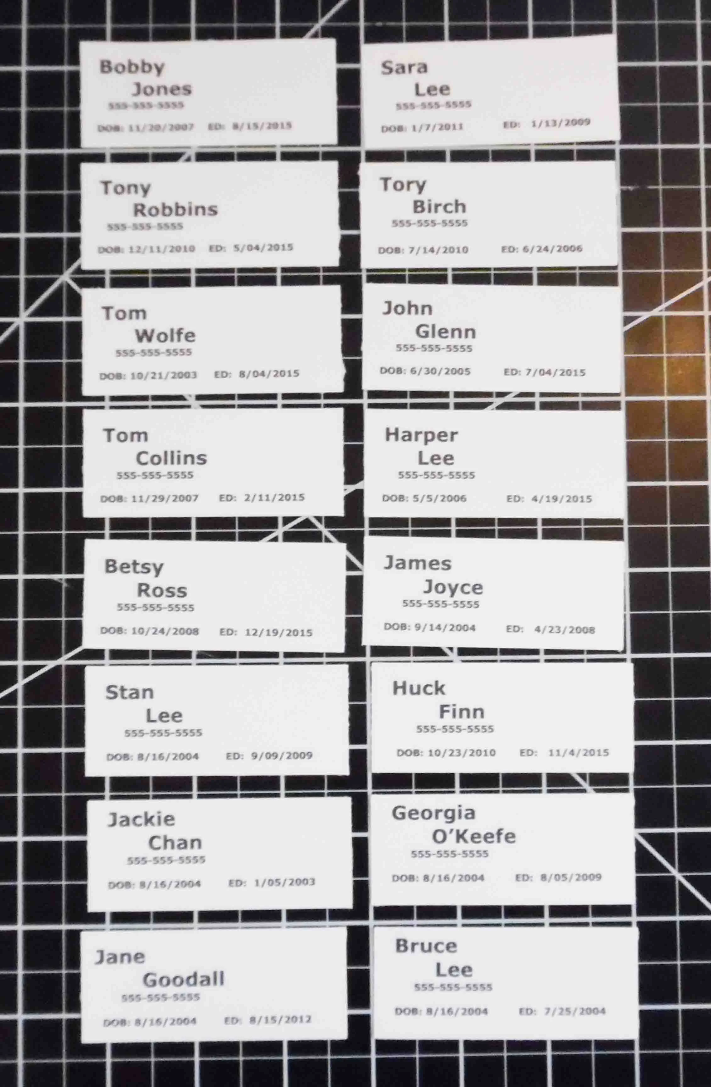 Our sheets are scored for easy separation. Just download the Insert Template, fill in the information that you want and print on your laser or inkjet printer.